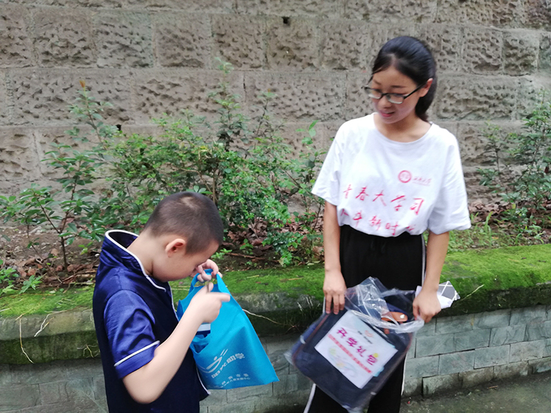 志愿者们一共为27名受助学生送去了精心筹备的秋季开学礼包,并且组织开展义卖电影票活动,为开学助力筹得资金,另外还有8名儿童参加了“微笑同行——快乐成长”主题活动。