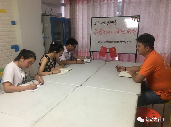2018年6月29日,在中国共产党即将迎来成立97周年之际,自贡市新动力社会工作服务中心党支委员会召开了“不忘初心,牢记使命”主题座谈会。整个座谈会,委员们一起回归分享入党经历及入党动机、表达加入党组织的意愿、并讨论工作中应起到的作用。最后一起重温入党誓言。