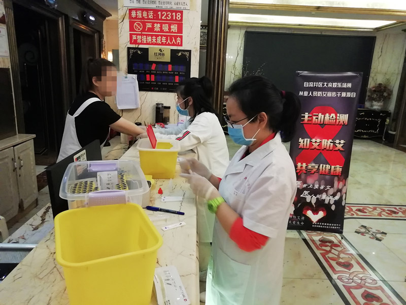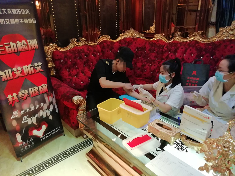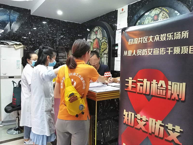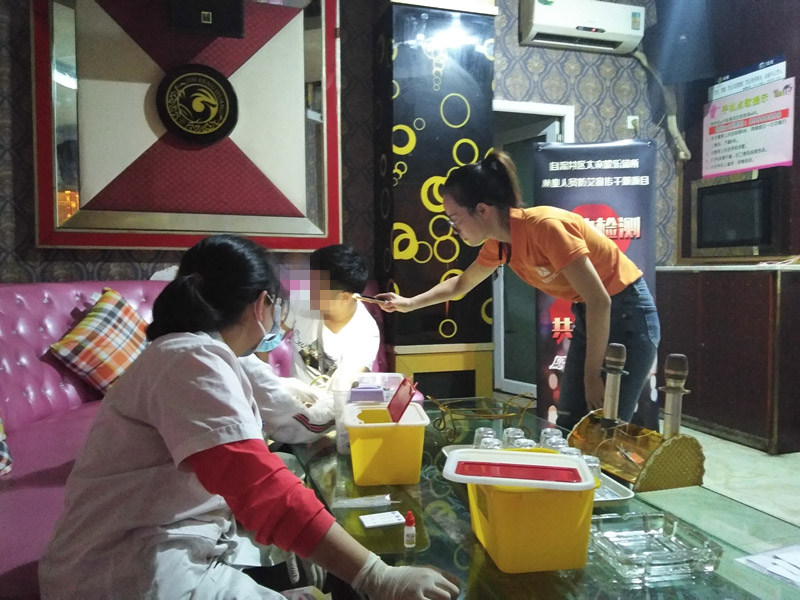 2019年9月3日-5日晚,在自流井区同兴路对石缸井路段大型娱乐场所KTV进行艾滋病宣传与检测,本周一共走访11家KTV,宣传人数达50余人,现场检测人数达34人。