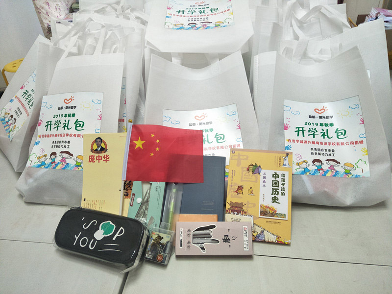 自贡市辖区内60名贫困学生将会陆续收到由自贡学诚课外辅导培训学校有限公司捐赠的秋季开学礼包,志愿者们将会开展第三次入户陪伴共同阅读“中华历史”回顾新中国成立以来伟大成就并为祖国“献礼”制作贺卡。