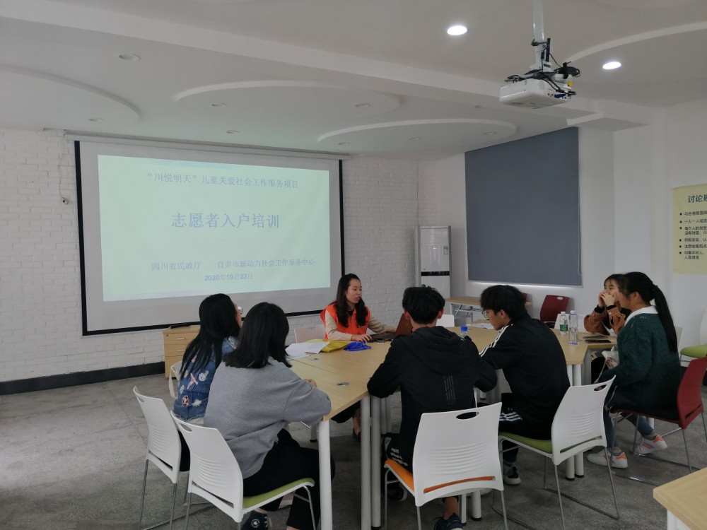 2020年10月23日,新动力社工在自流井区社会组织孵化园406组织了志愿者入户培训,本次培训6名志愿者参与。