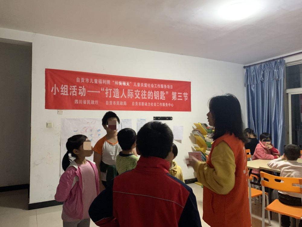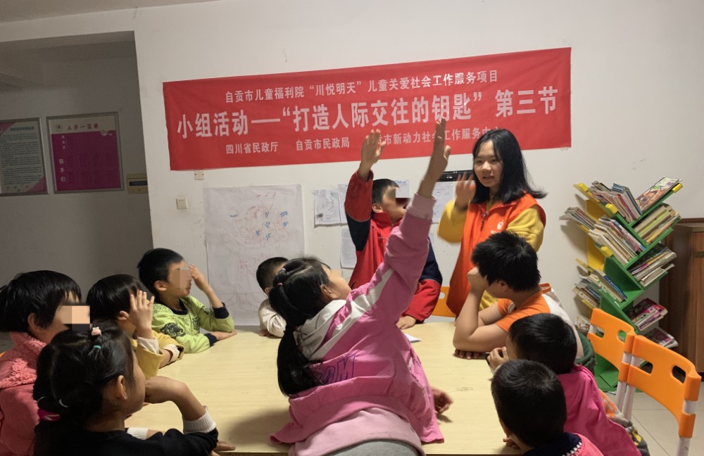 为运用专业知识介入儿童青少年的交往模式,了解他们与他人的交往方式,增强其对自己的了解,接纳真实不完美的自己,减少人际交往时的自卑心理,引导他们发现自己人际交往方式欠缺的地方,学会与他人换位思考,提升与人交往的技巧方式,促使其健康地成长。新动力社工于2020年10月23日组织了“打开人际交往的钥匙”为主题的第三节小组活动,本次活动共11名儿童福利院儿童参加。