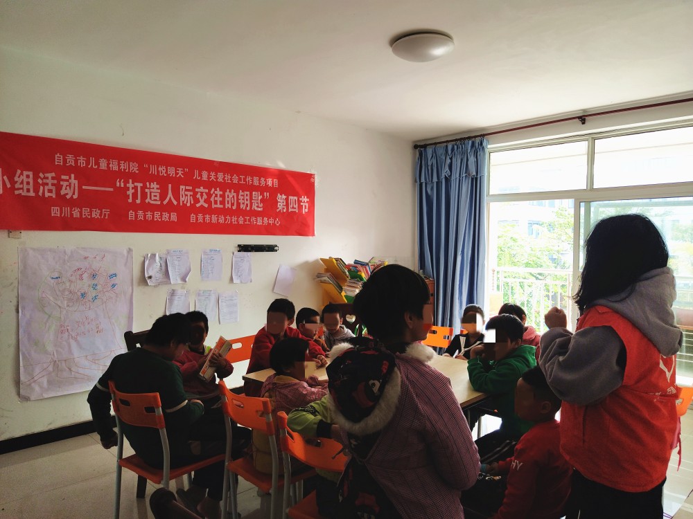 为运用专业知识介入儿童青少年的交往模式,了解他们与他人的交往方式,增强其对自己的了解,接纳真实不完美的自己,减少人际交往时的自卑心理,引导他们发现自己人际交往方式欠缺的地方,学会与他人换位思考,提升与人交往的技巧方式,促使其健康地成长。新动力社工于2020年10月24日组织了“打开人际交往的钥匙”为主题的第四节小组活动,本次活动共12名儿童福利院儿童参加。