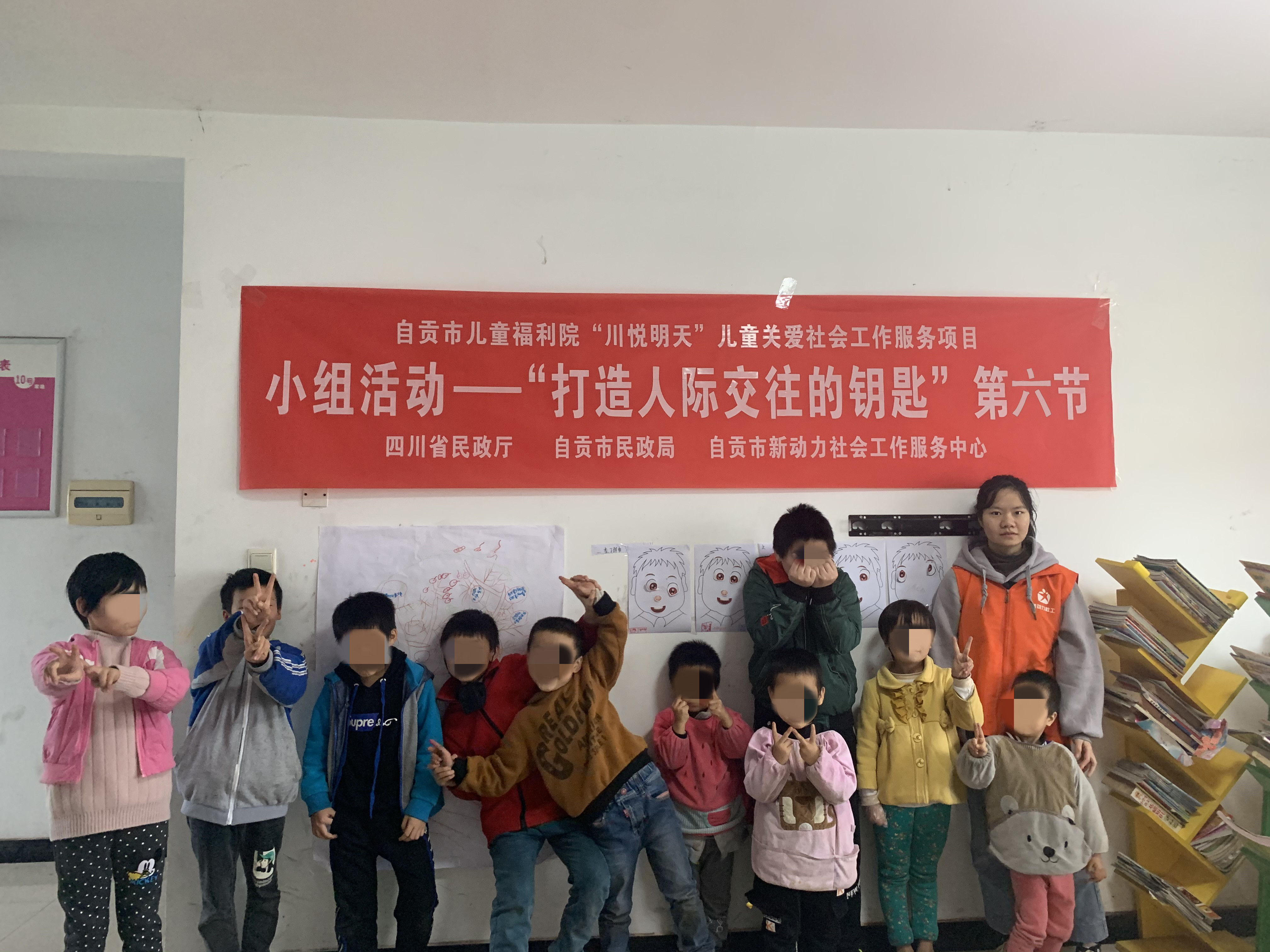 为运用专业知识介入儿童青少年的交往模式,了解他们与他人的交往方式,增强其对自己的了解,接纳真实不完美的自己,减少人际交往时的自卑心理,引导他们发现自己人际交往方式欠缺的地方,学会与他人换位思考,提升与人交往的技巧方式,促使其健康地成长。新动力社工于2020年10月31日组织了“打开人际交往的钥匙”为主题的第六节小组活动,本次活动共10名儿童福利院儿童参加。