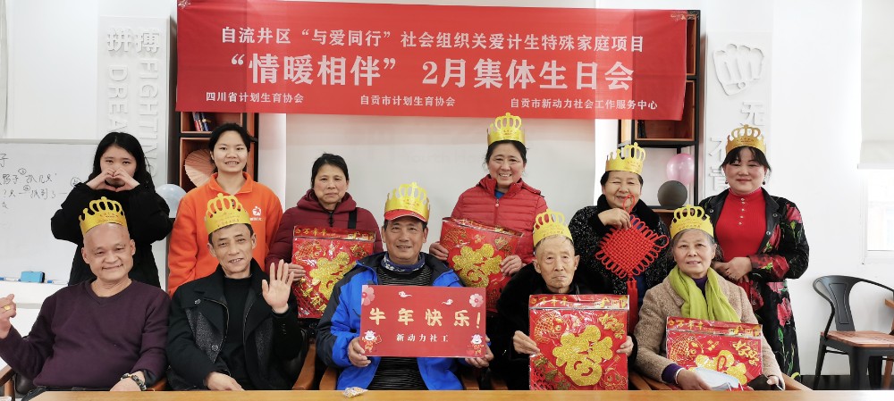 2月7日,新动力社工举办了自流井区“与爱同行”社会组织关爱计生特殊家庭项目之“情暖相伴——2月集体生日会”。本次活动10位寿星齐聚一堂,共同度过了一个难忘的集体生日。