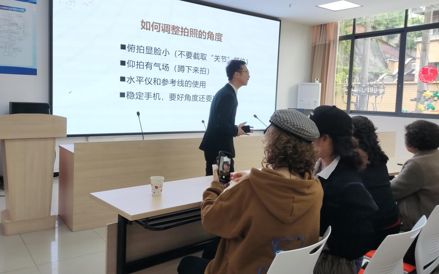 2022年4月18日,由自流井区计划生育协会主办,自贡市新动力社会工作服务中心承办的“灿烂微笑·定格时光”手机拍摄赋能讲座,分别在东兴寺街道与自流井区社会组织孵化园举行。其中,自流井区40余名服务对象参与了本次活动。