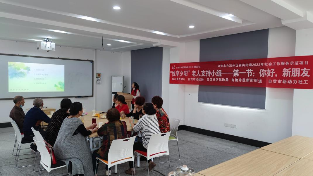 通过前期困境老人入户走访调查,社工发现街道各社区大多数困境老人日常生活枯燥,加上儿女不在身边,感到孤独寂寞。为了缓解困境老人的孤寂感,丰富其文娱生活,促进相互之间了解和认识,进而构建起社会支持网络。2022年10月24日,新街街道社工在306多功能活动室针对社区困境老人、留守老人开展“悦享夕阳”老人支持小组第一节活动,本次活动有10位老人参与。