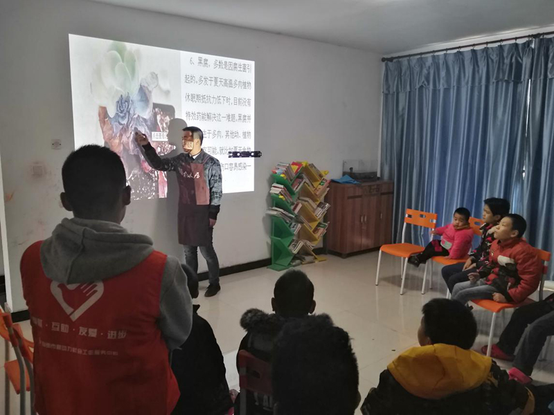 活动分为知识讲解和动手DIY两个部分。活动开始,社工向孩子们说明了本次活动的意义,告诉孩子们要爱生命,爱生活,同时在活动过程认真学习、遵守纪律。在专业老师的讲解下,孩子们认识了“多肉植物”,知道了在种植多肉的过程中的注意事项,对多肉种植有了基础的认知;随后开始动手DIY,选择自己喜欢的多肉植物,通过亲自动手给它一个温暖、漂亮的“家”,活动在愉快的氛围中结束。