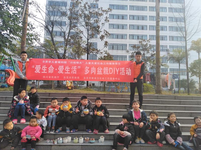 生命来之不易,为了引导教育孩子们珍爱生命、热爱生活,12月7日,新动力社工在自贡市儿童福利院组织开展了“爱生命·爱生活”多肉盆栽DIY活动,13名儿童及2名志愿者参与了本次活动。