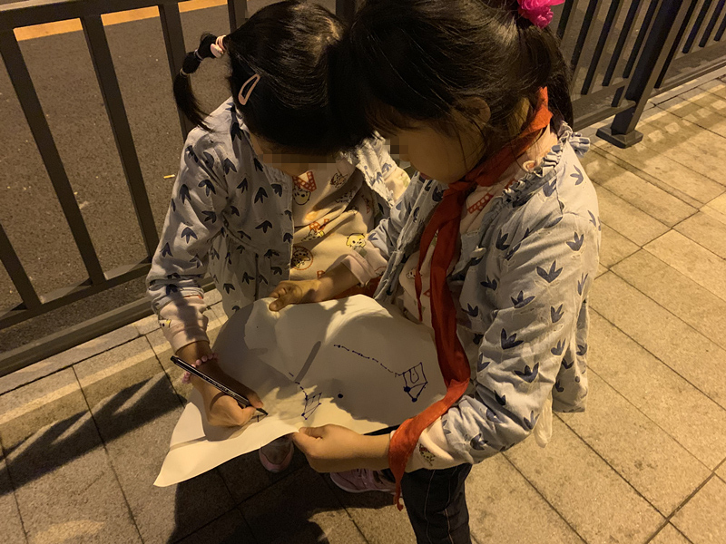社工首先向孩子们介绍了本次“地图”活动的意义、注意事项等,随后社工带着分好组的孩子们外出,沿着福利院院外人行道下行至龙湖中学再折返回院,期间孩子们很认真的将自己走过的道路两旁所见之景、物画在纸上,并将路上的安全隐患等一一标识出来,回到院内后大家都积极向小伙伴们展示自己的成果。