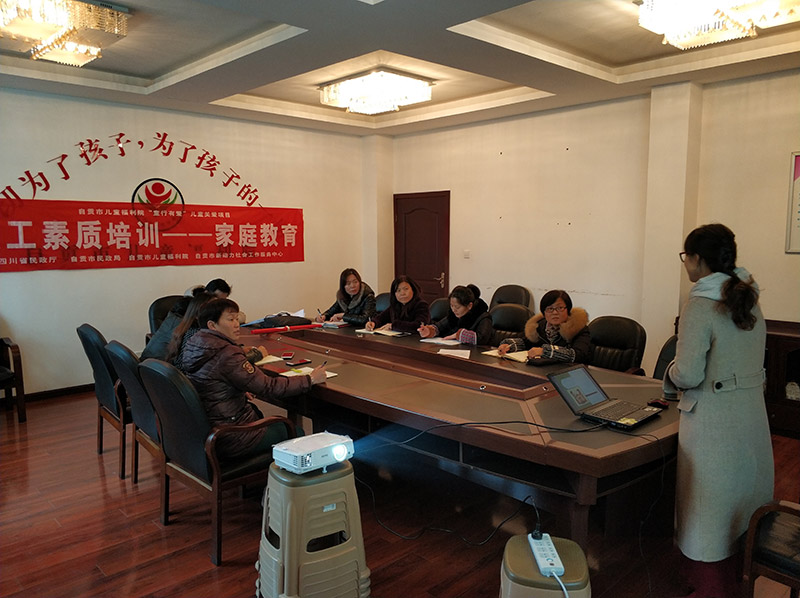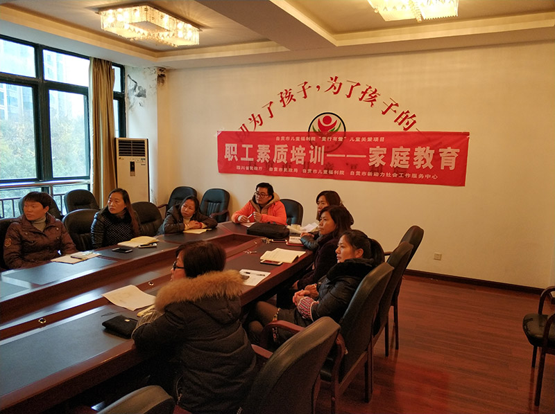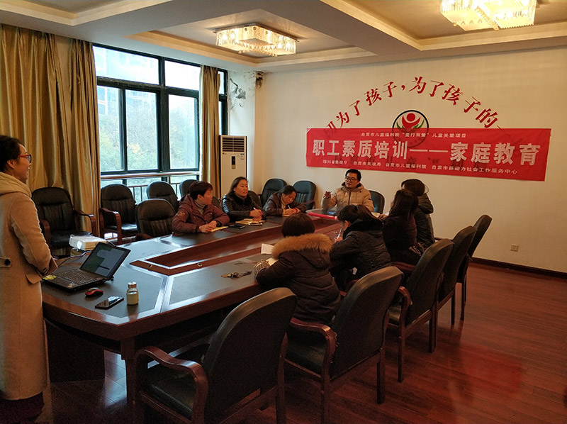 为提升自贡市儿童福利院职的业务能力,更好的为青少年儿童服务。2018年12月27日下午,自贡市新动力社会工作服务中心进行社会资源链接,邀请家庭教育专家为福利院职工开展“怎样与青少年儿童进行有效沟通”为主题的培训。
