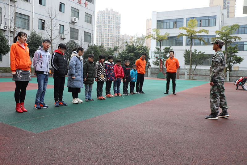 上午9点至10点,孩子们在寒冷的室外完成了军训。孩子们经受住了室外低温的考验,完成了教官各项指令。