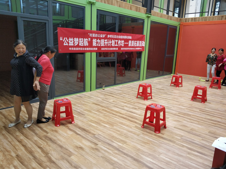 本次能力提升工作坊活动内容为团队建设素质拓展,通过社工教受几个易于实行的拓展小游戏、让村自组织领袖及热心村民参并到游戏中,每完成一个游戏就游戏的目的及能达到的效果给予讲解。