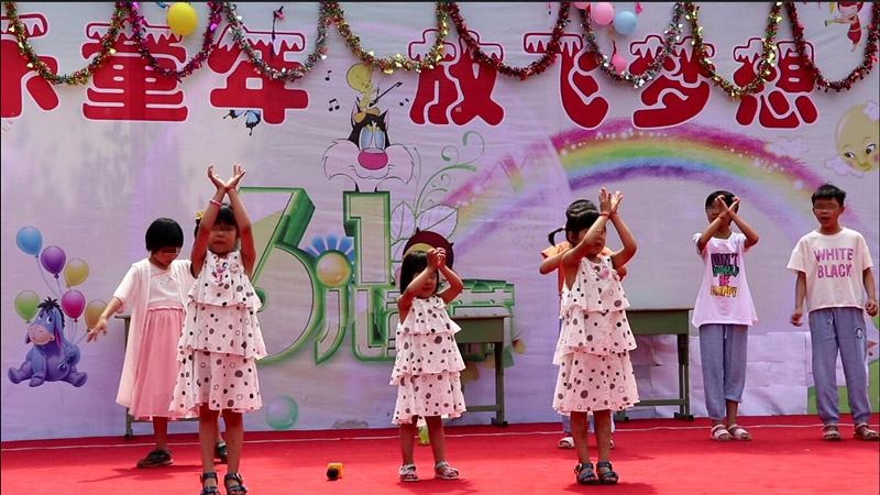 游园结束,孩子们在舞台上进行了自我展示,年龄稍小的孩子演唱了歌曲《我会听话》、表演舞蹈《最美的光》,年龄稍大的孩子演唱了英文歌曲《MOSTERS》。