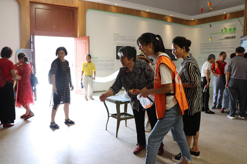 上午活动为老人们自由活动,有些老人坐在一起唠起了家常,有些老人到田间呼吸新鲜空气,有些老人当起了志愿者帮着布置下午的游园活动。