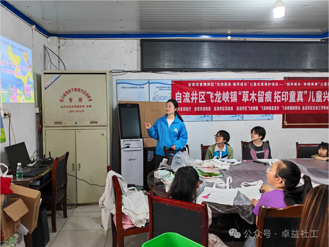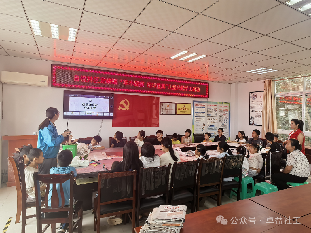 近期,自流井区卓益社会工作发展中心、自流井区飞龙峡镇新的社会阶层人士联谊会分别在飞龙峡镇星星村、丁香村及红岩村三个村的活动室组织开展了“草木留痕 拓印童真”儿童兴趣手工活动,飞龙峡镇共58名儿童参与。
