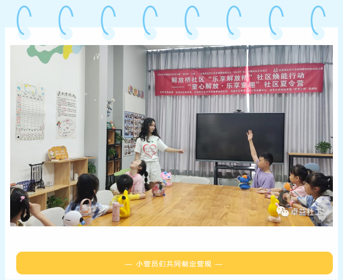 为优化社工服务,提升社区服务效能,回应社区儿童成长需求,关心关爱儿童暑期生活,2023年7月12日至14日,解放桥社区社工室组织开展了“乐享解放桥”社区焕能行动——“童心解放,乐享童趣”社区夏令营主题活动。