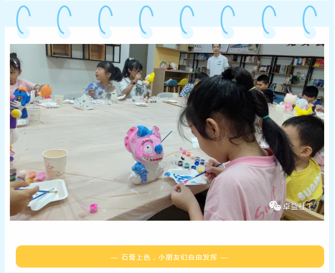 此次夏令营社工为小朋友们带来了丰富的活动体验,内容把包括:石膏上色、红色电影、《童心向党》朗诵节目录制、畅想未来趣味绘画、纸桥承重趣味实验以及众多团队协作小游戏。活动最后,社工根据活动考勤选出了“优秀营员”,由解放桥社区范书记亲自为小营员们颁发奖章。