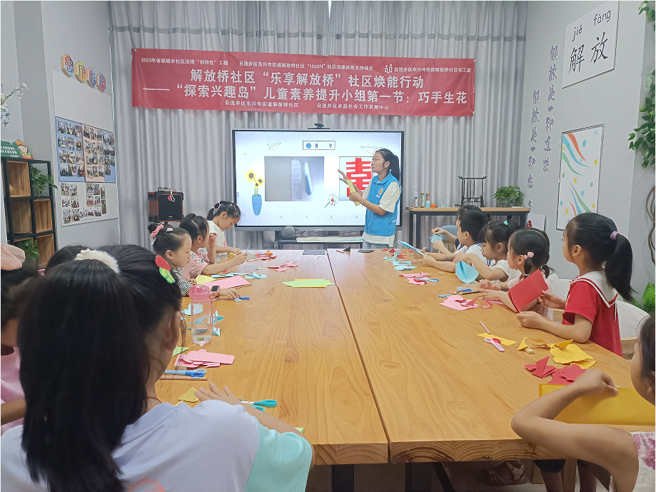 为回应社区儿童成长需求,帮助提升社区儿童综合素质和能力。2023年8月2日-8月8日,解放桥社工室组织开展了“探索兴趣岛”——儿童素养提升小组活动,社区15名儿童参与。