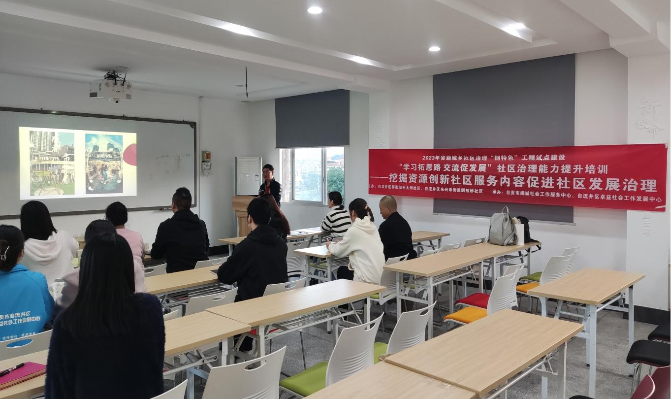2023年10月27日,自贡市自流井区解放桥社区、光大街社区组织开展“聚焦社区资源挖掘 提高社区治理效能”社区治理能力提升培训,社区两委人员及社会组织服务人员等共计16人参加了本次培训学习。
