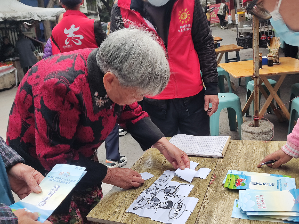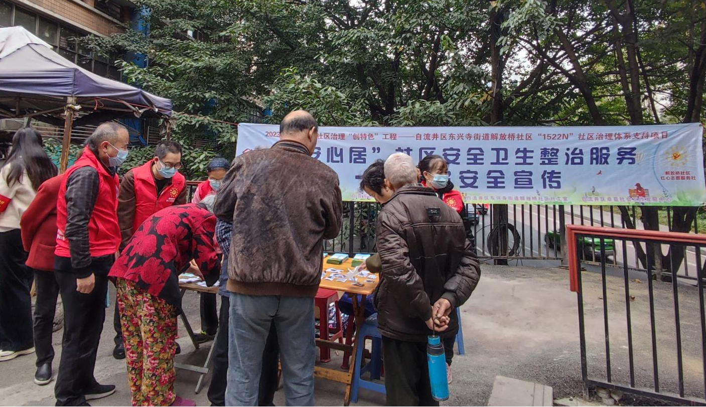 2023年12月12日,为提升解放桥社区居民居家安全意识,加强火灾防范,解放桥社区红心志愿服务队在簸米湾开展了“防范居家安全 建设美好家园”居民居家安全宣传活动。