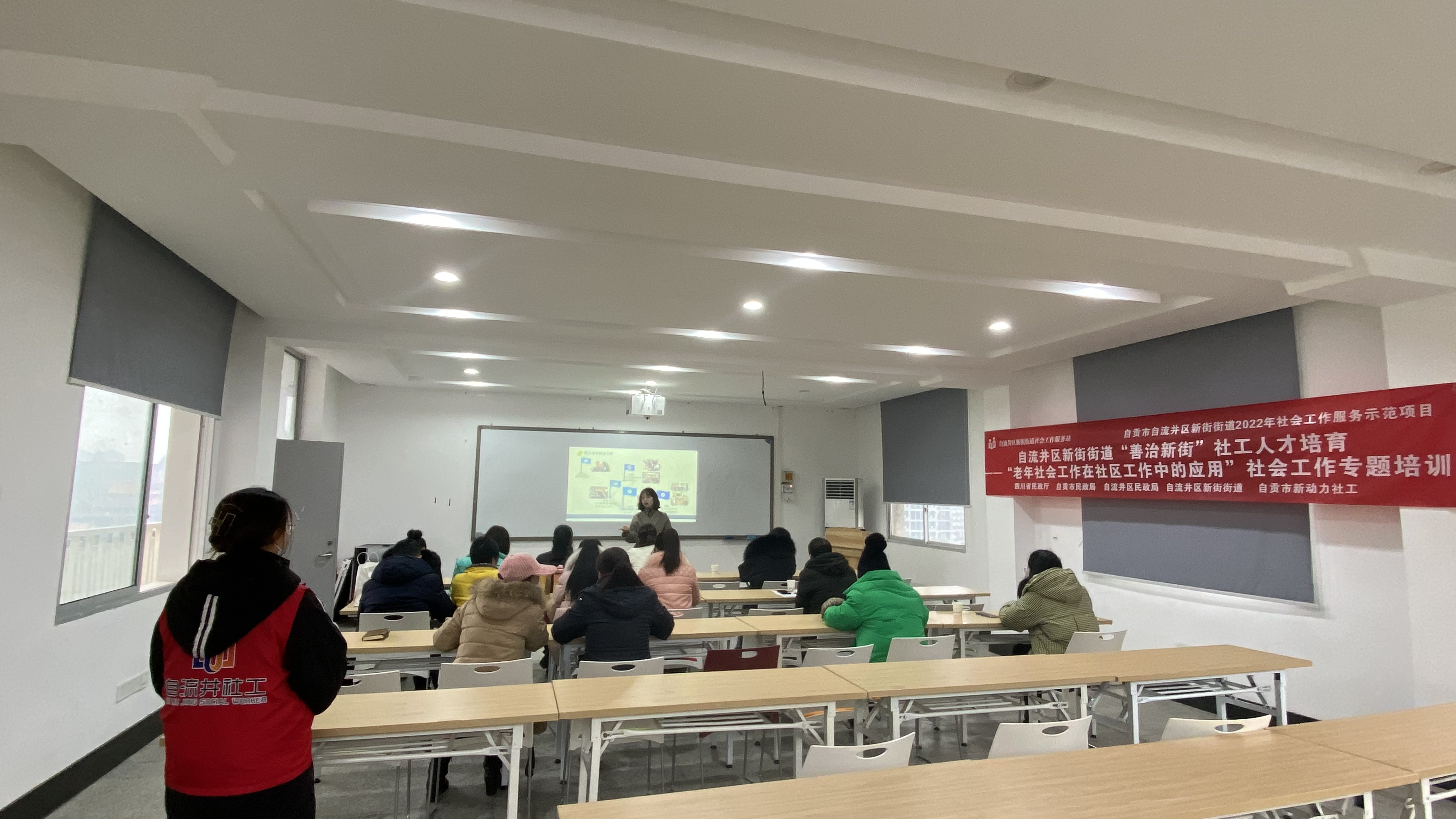 2023年1月4日,自流井区新街街道社会工作服务站开展“老年社会工作在社区工作中的应用”的专题培训,新街街道四个社区党委书记等17人参加本次培训。