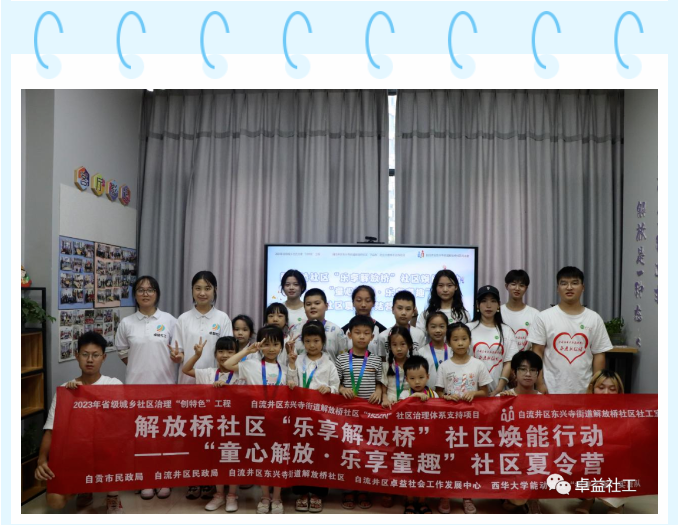 为优化社工服务,提升社区服务效能,回应社区儿童成长需求,关心关爱儿童暑期生活,2023年7月12日至14日,解放桥社区社工室组织开展了“乐享解放桥”社区焕能行动——“童心解放,乐享童趣”社区夏令营主题活动。